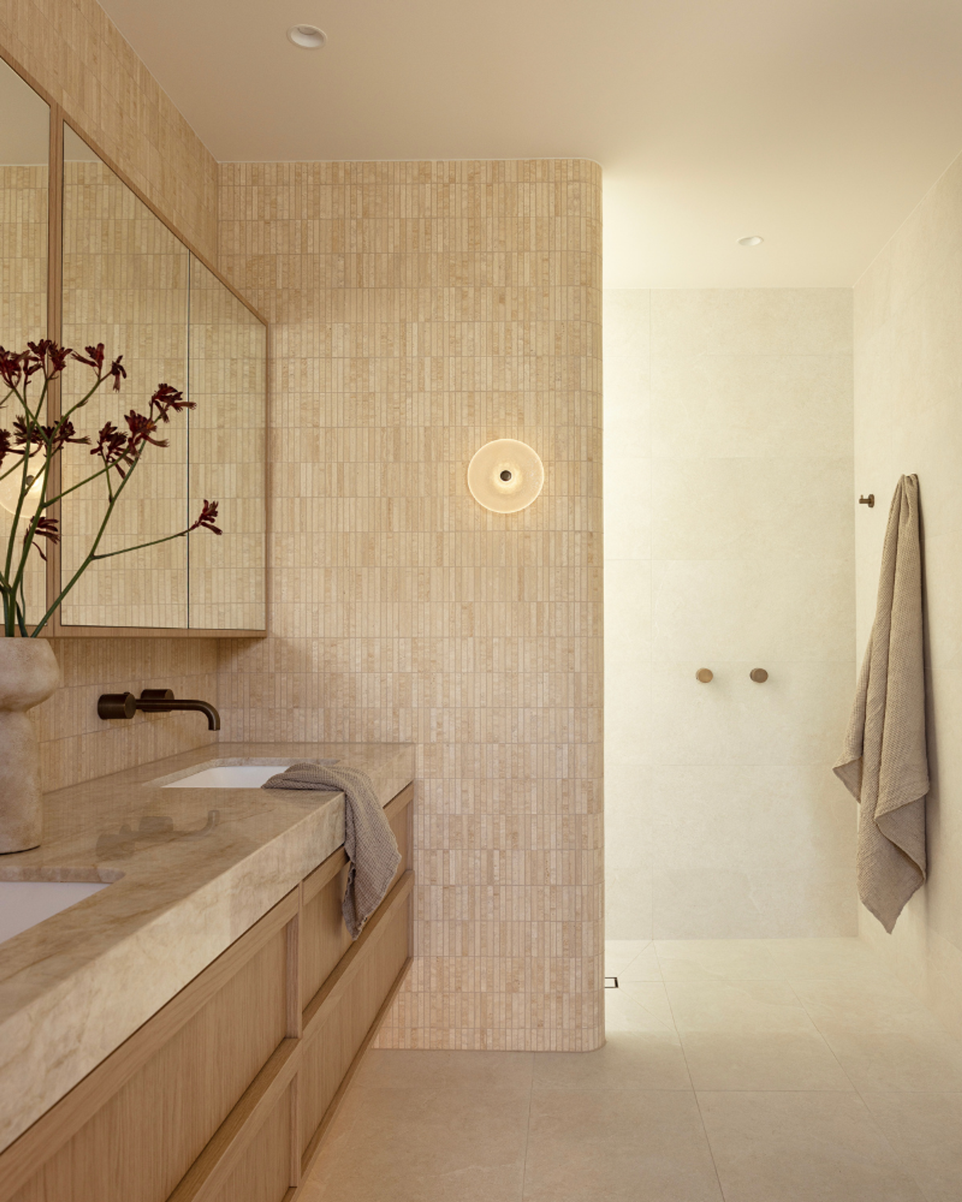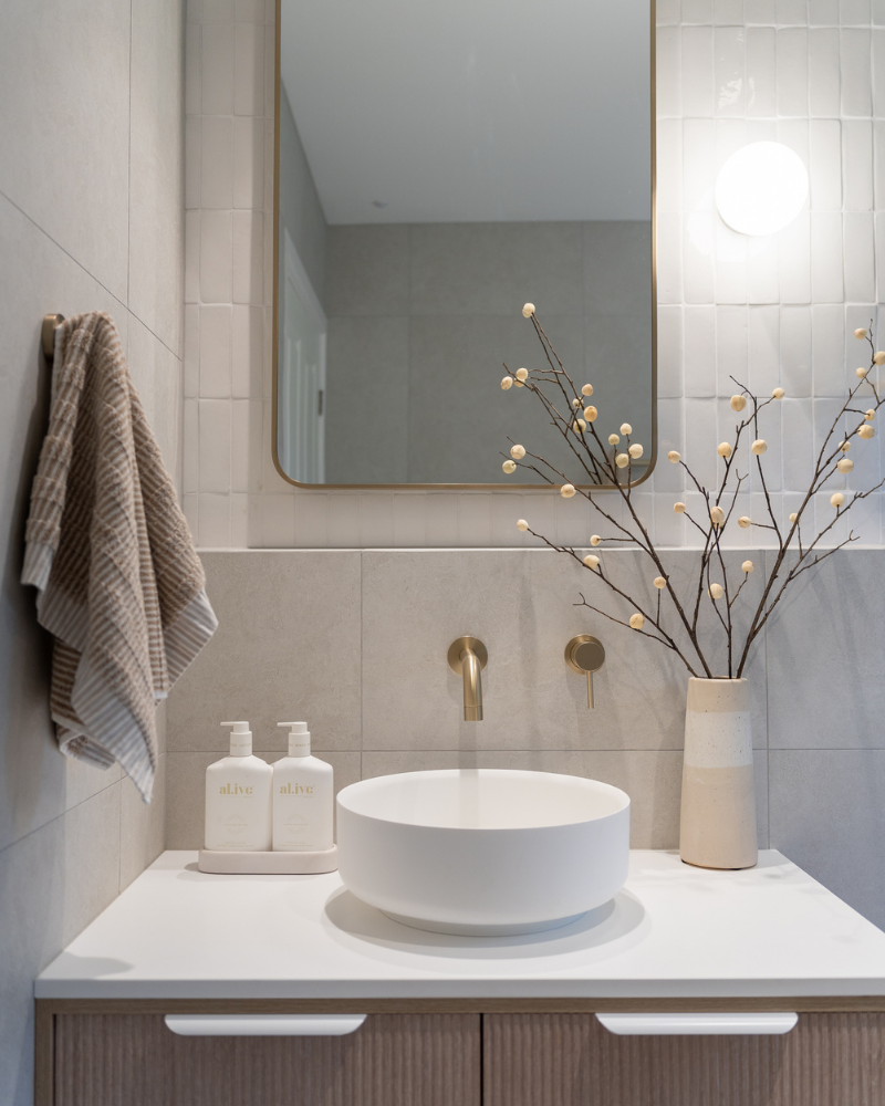 The lighting is soft but clear. The mirror works. There's no harsh glare. And the whole space feels easy to use and spend time in. A feature light is usually the reason why. It is the first thing you notice when you walk in, and it quietly shapes how the room feels without thinking too much about it.