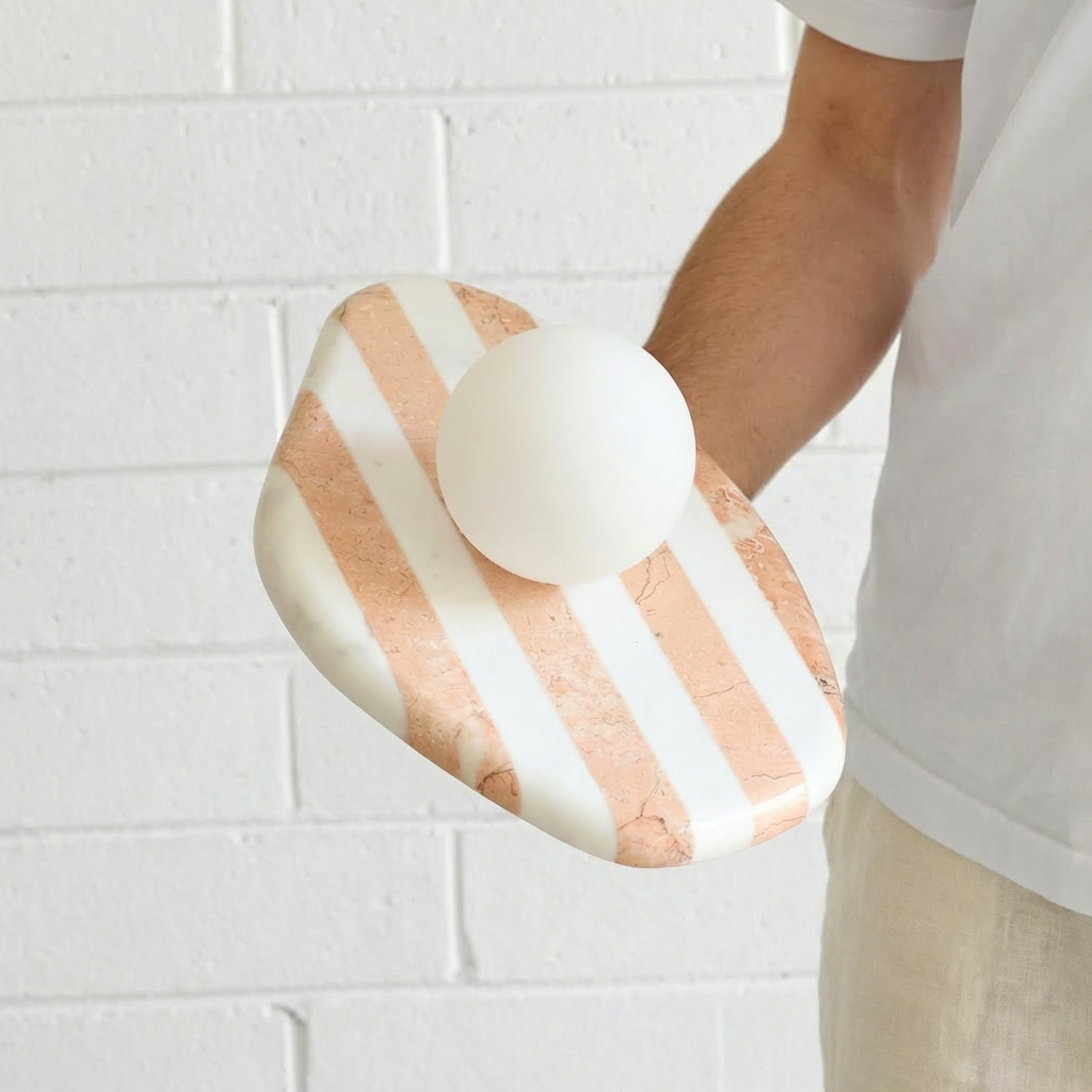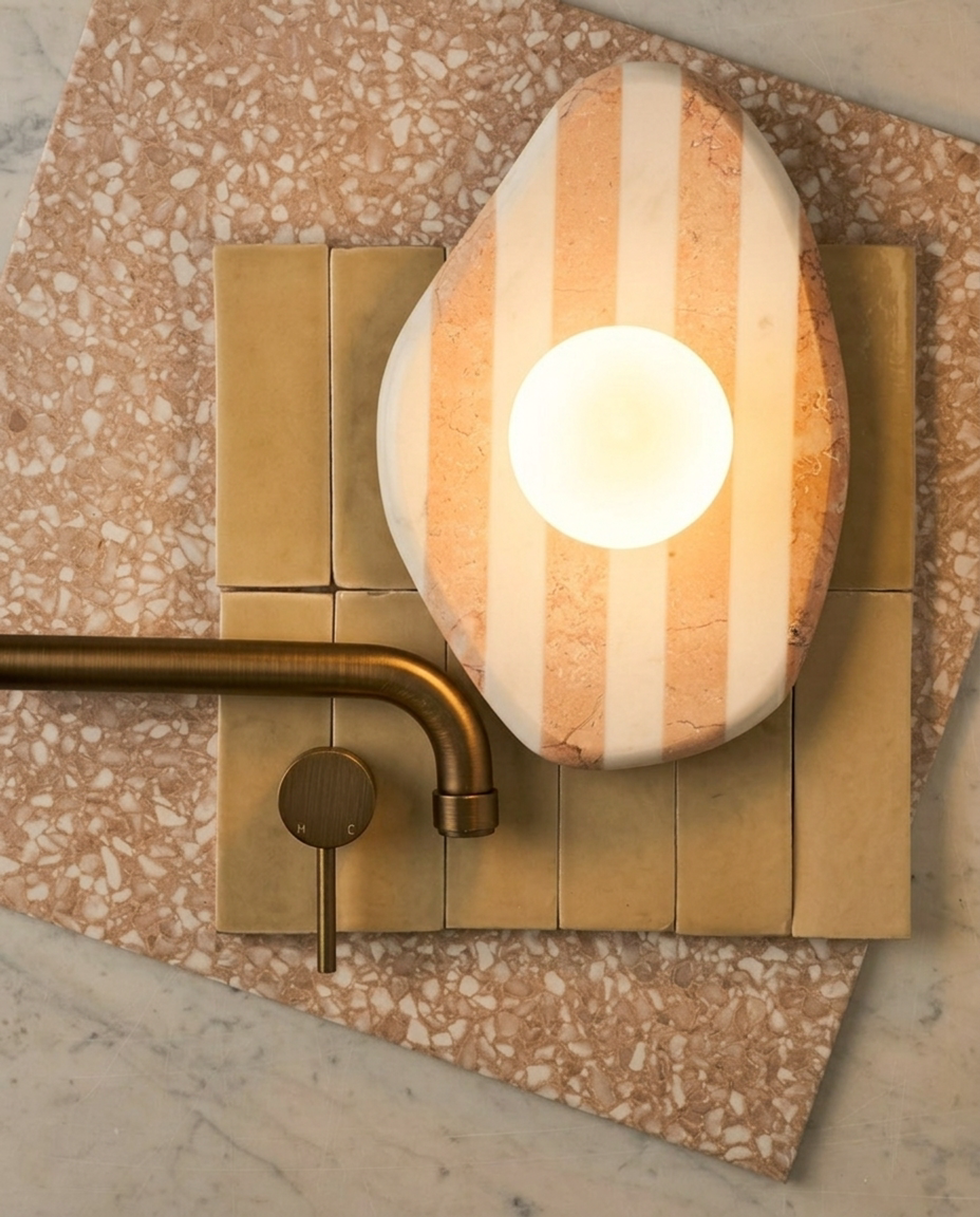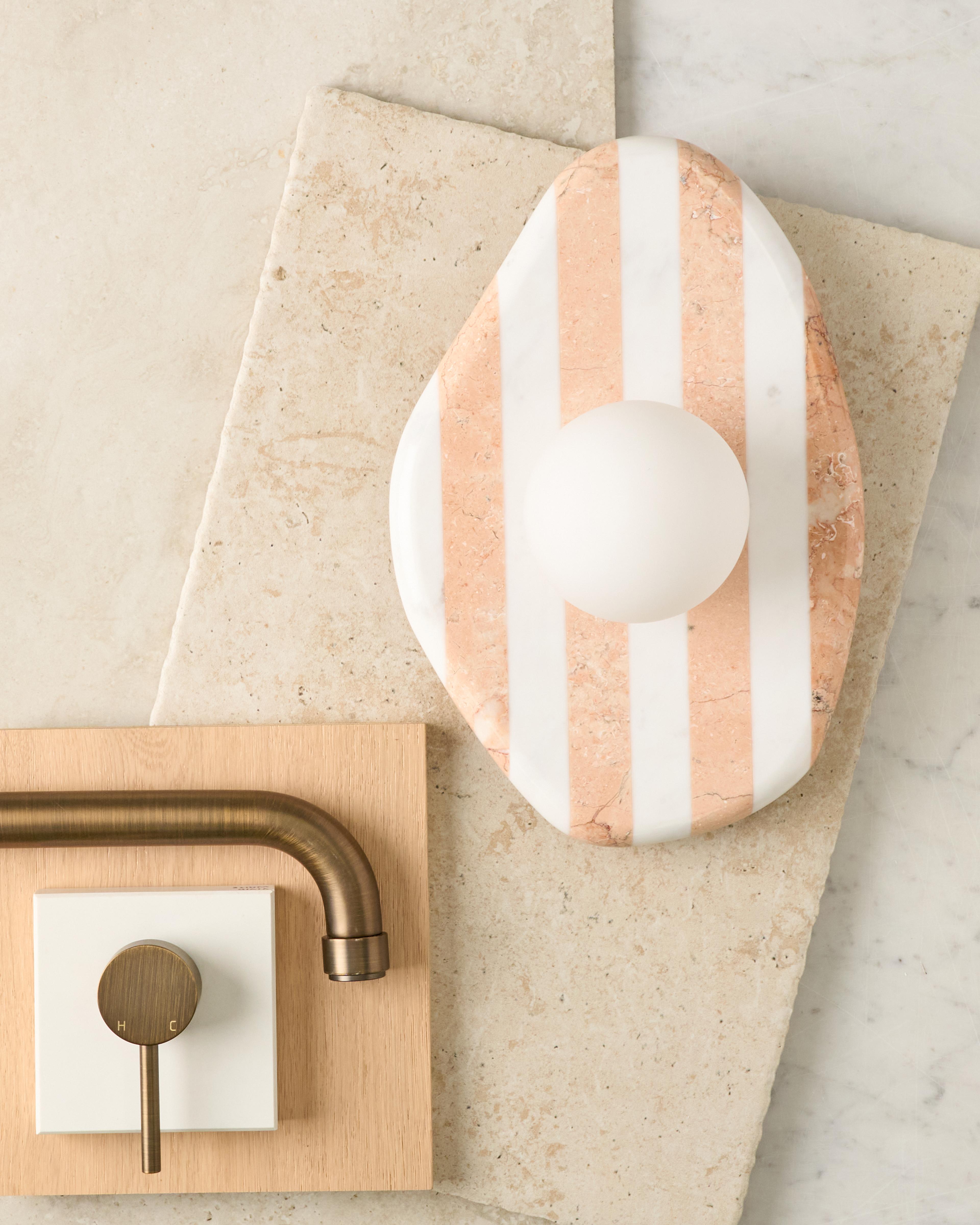 The Carlton Stripe Wall Light is a statement wall light designed to bring colour and character to a space. Its striped design makes it a standout feature while still feeling relaxed and refined. Perfect for kitchens or laundries where decorative lighting can add personality, it also works beautifully as a bedside wall light or installed beside a vanity in a bathroom or powder room. Pairing it with warm brushed nickel tapware helps create a modern coastal feel, and pairing it with a warm globe will produce a gentle, ambient light.