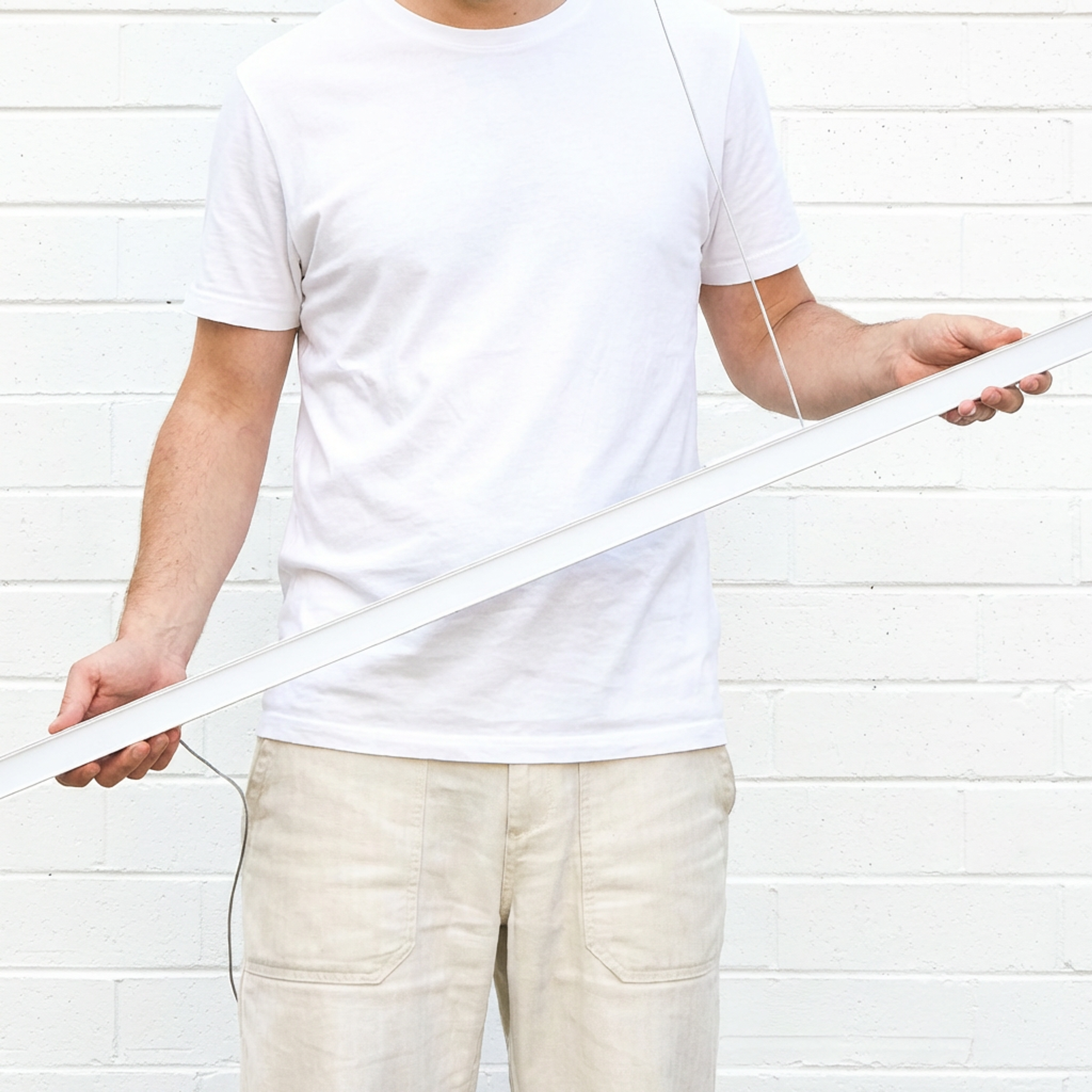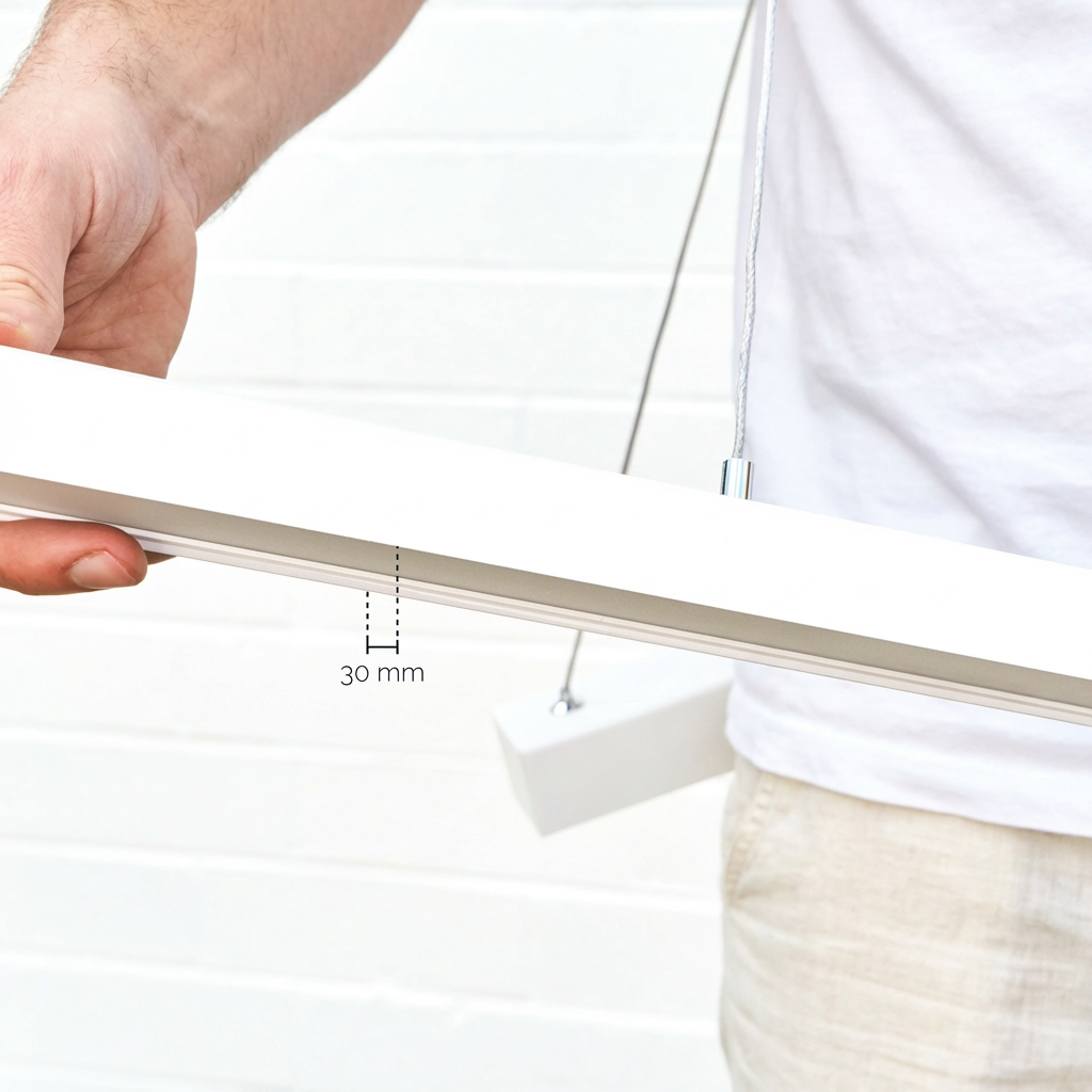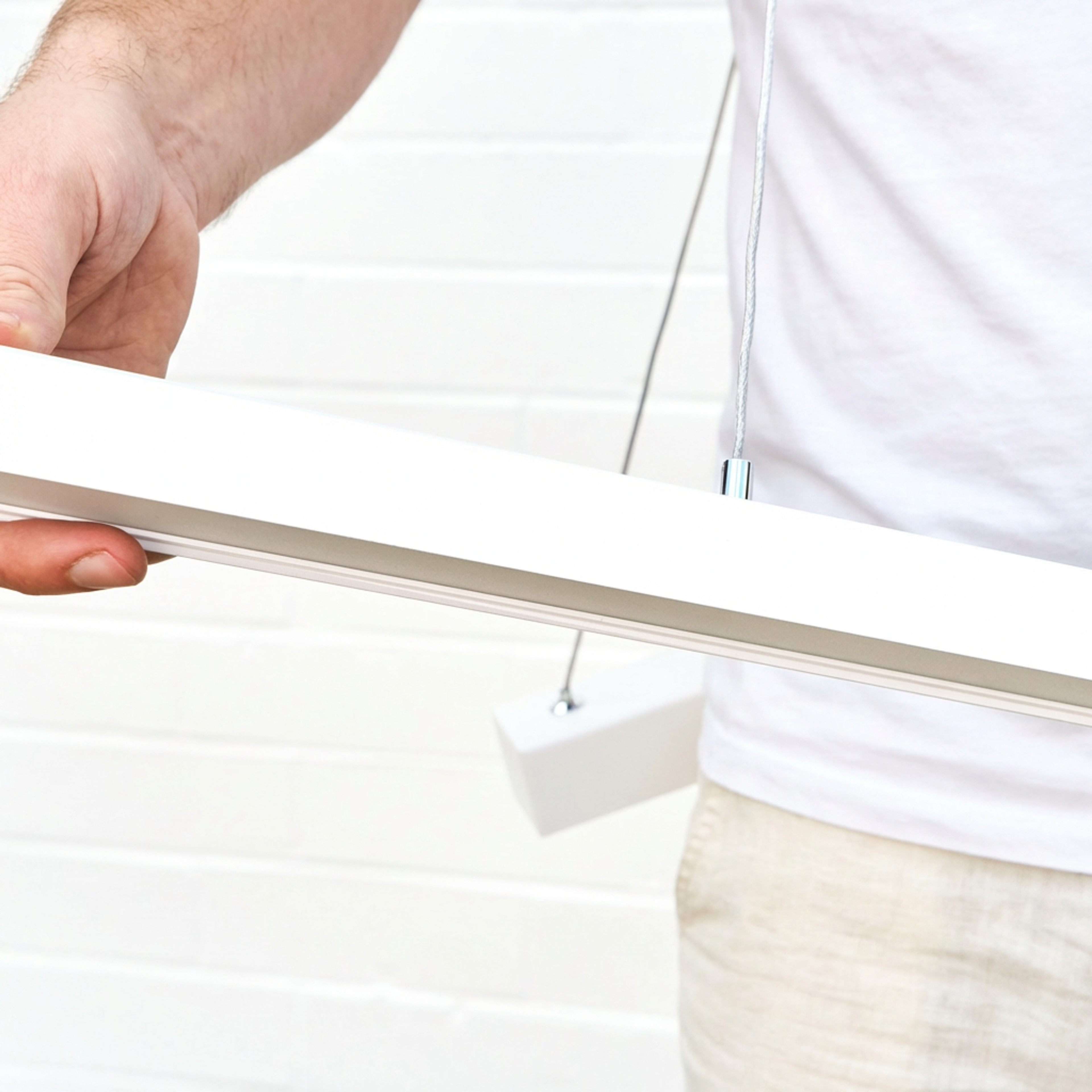 The Elwood White Hanging Light is a modern hanging light with a slim, streamlined profile and a centrally located ceiling canopy. Perfect for kitchens or living areas, its metal build in a crisp white finish offers flexible colour temperature switching. Works well above dining tables or kitchen islands where adjustable suspension and focused light make all the difference.