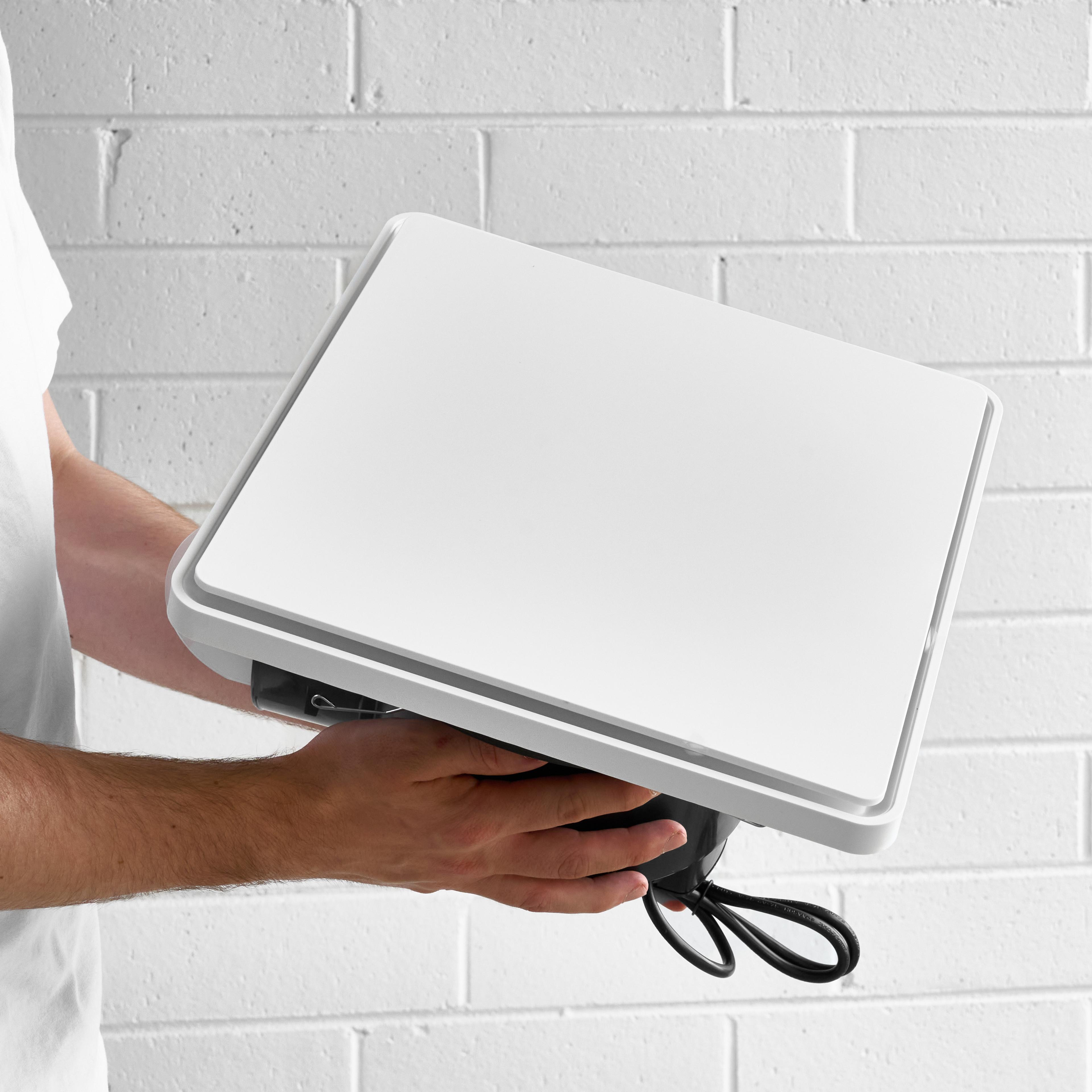 The Gerringong White Square Exhaust Fan is a 250mm Square Exhaust Fan with 290mm Dia Cut Out. It is a dependable ventilation solution for bathrooms, laundries, and kitchens, ideal for everyday use in smaller to medium-sized spaces. Its minimalist matte white fascia sits cleanly within the ceiling, blending seamlessly into modern interiors while helping to manage moisture and odours.