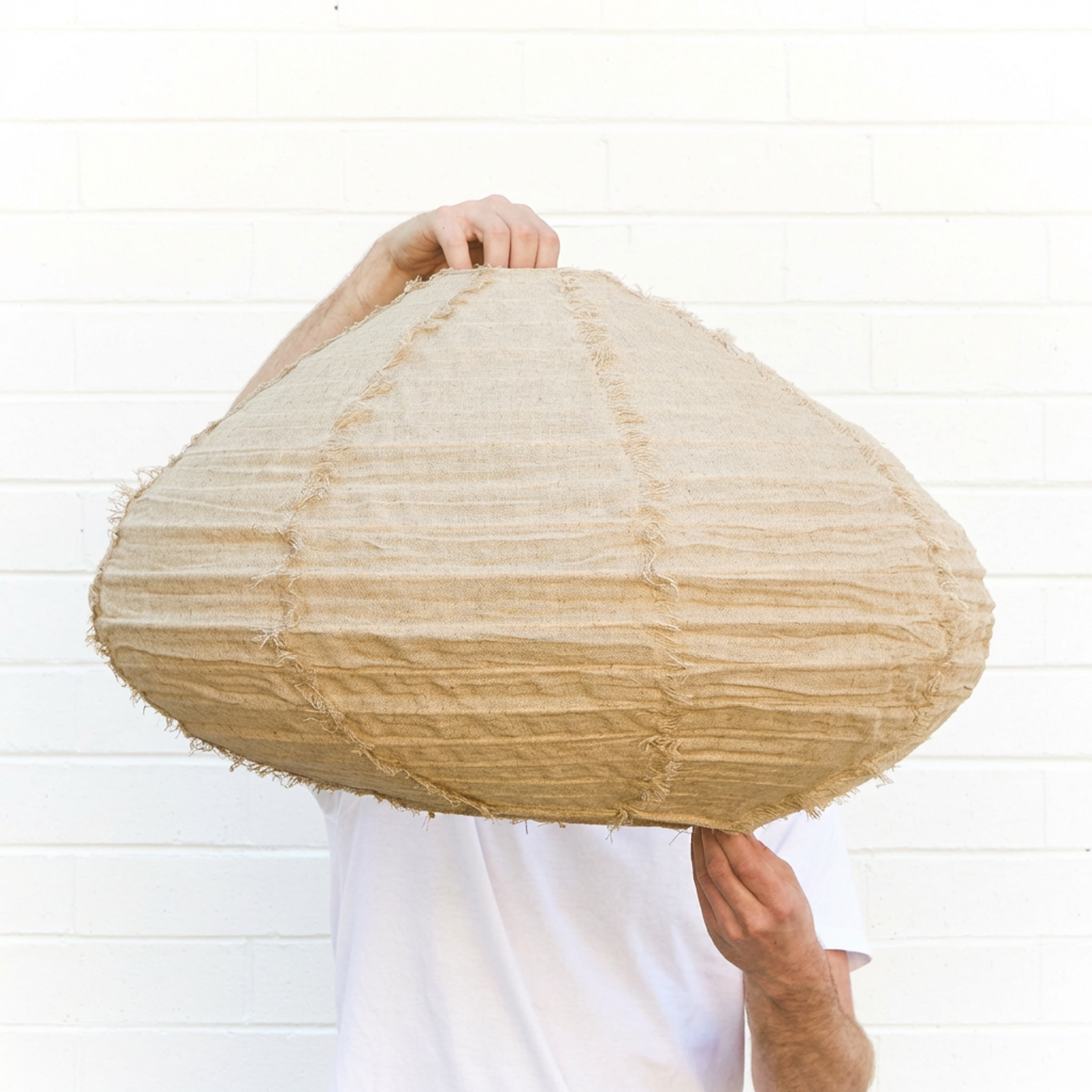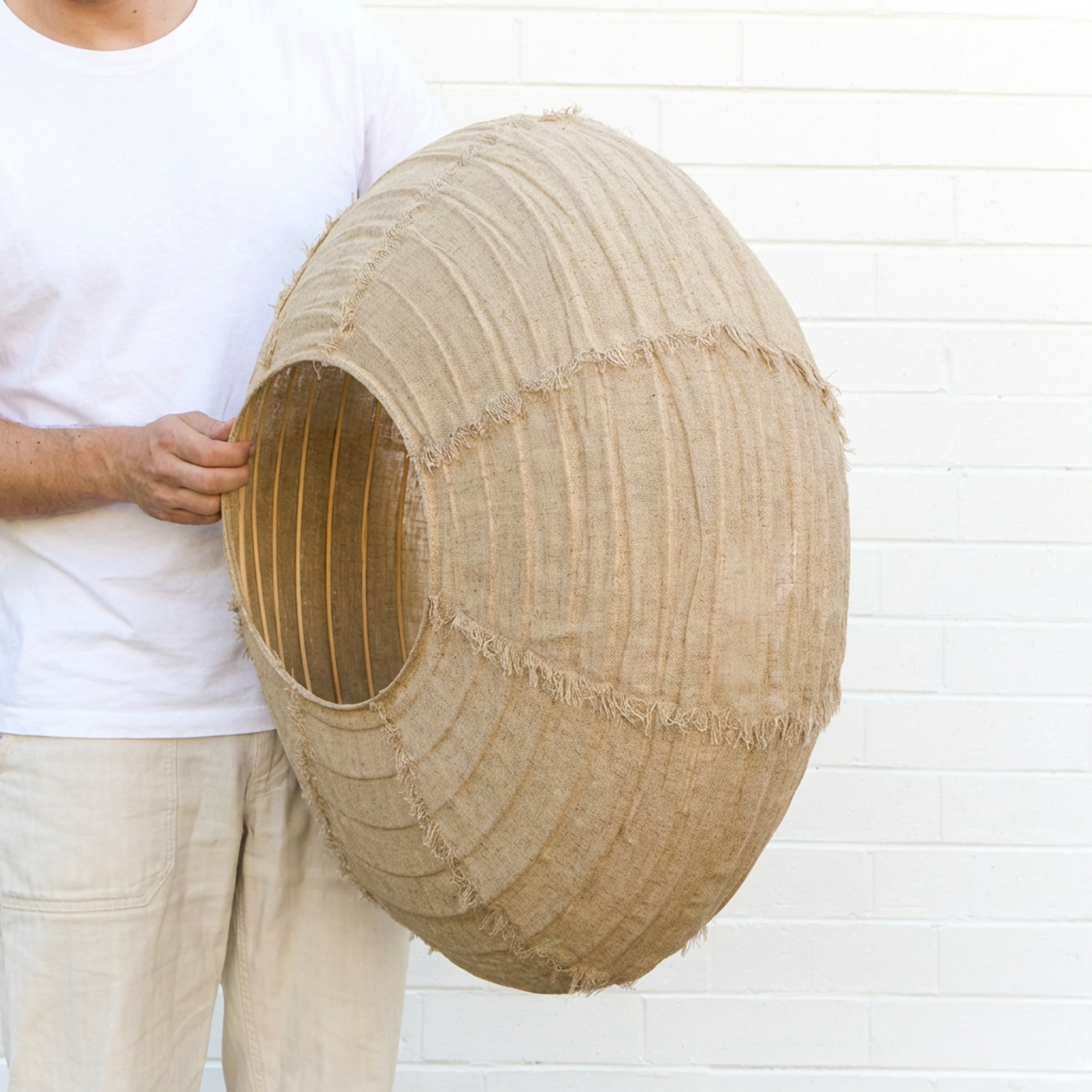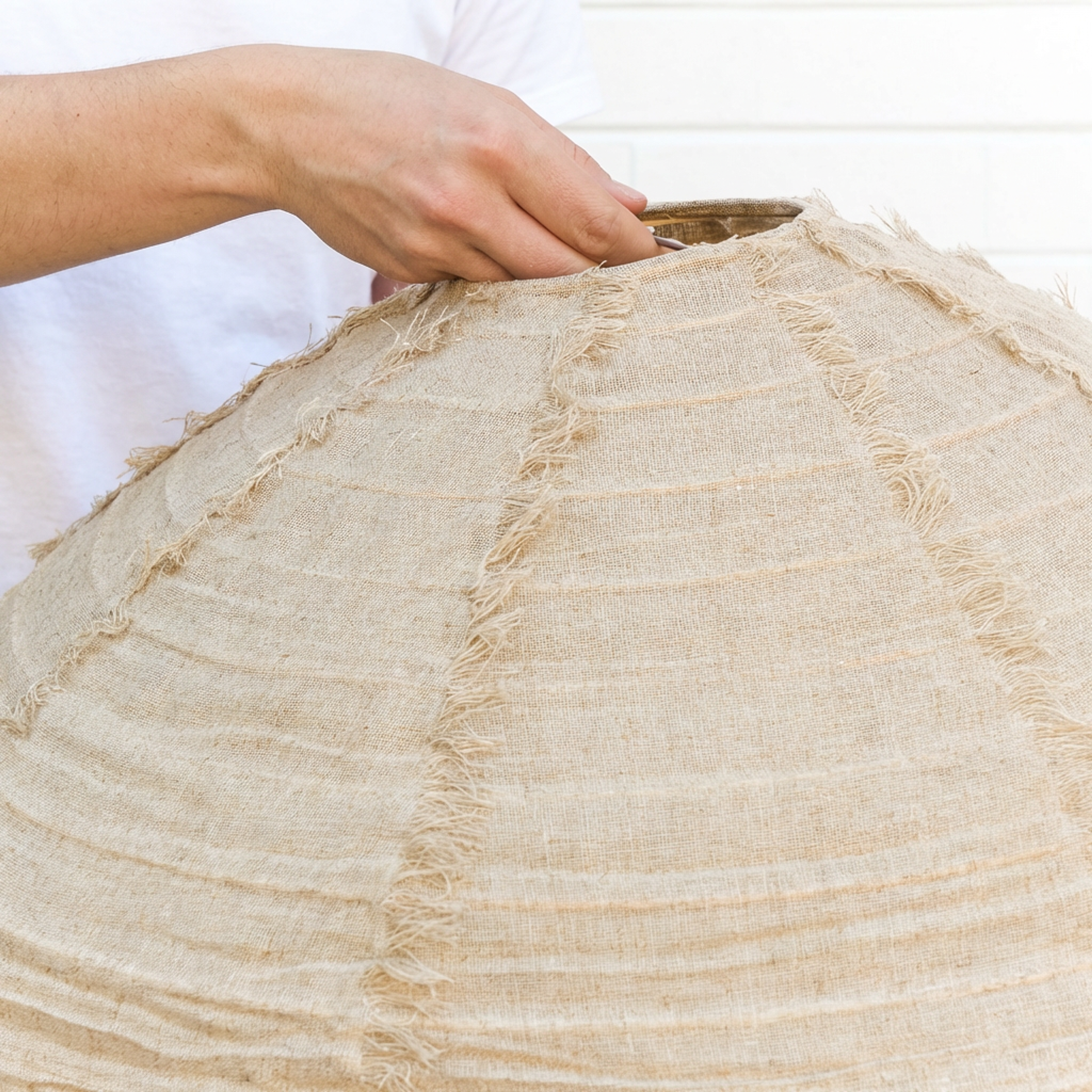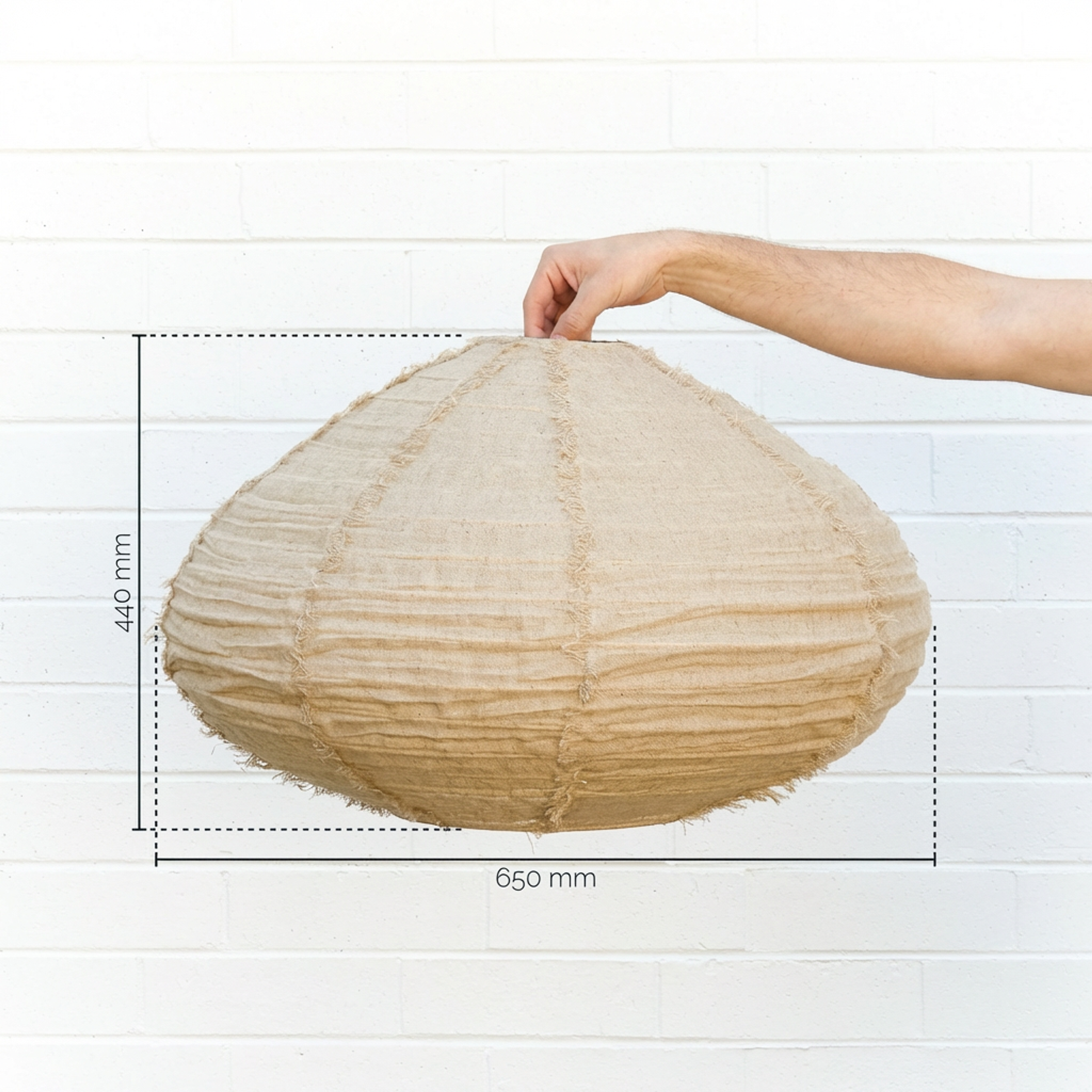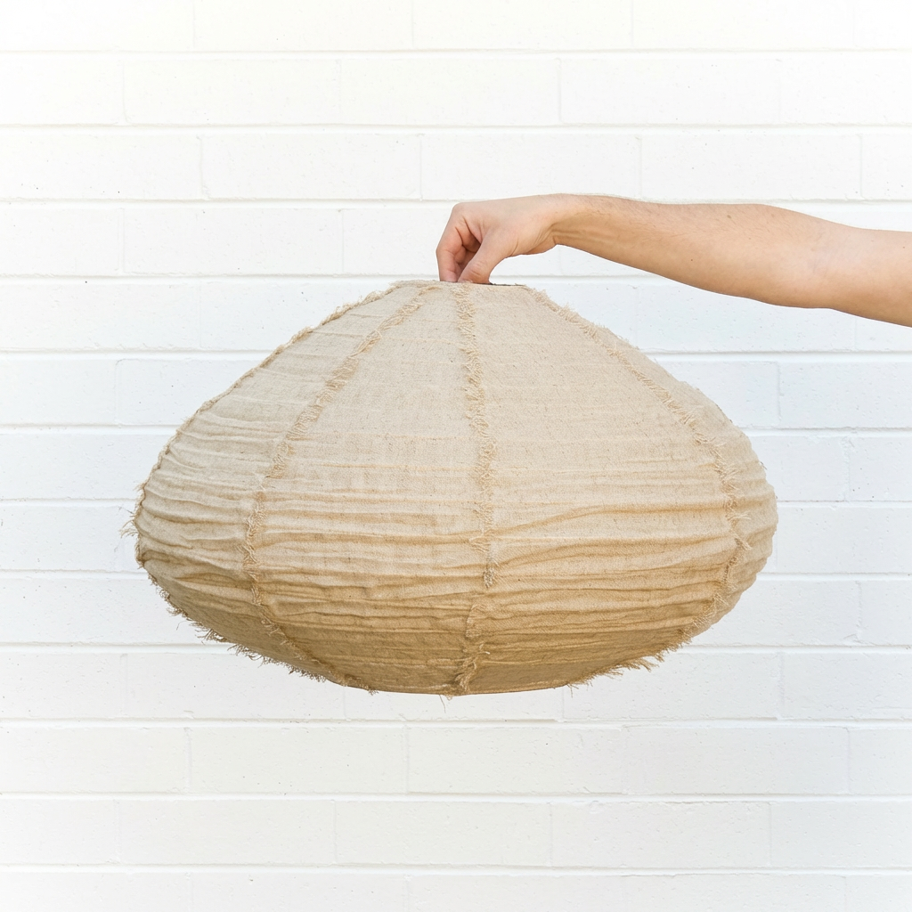 The Nelson Bay Hanging Light shade is a contemporary pendant light shade with a relaxed, minimalist look and hand frayed linen edges. Perfect for living, bedroom, or dining spaces, its natural linen shade diffuses light softly for a warm, inviting glow and adds subtle texture to your room. Works well above a dining table or as a statement piece in a cozy reading nook.