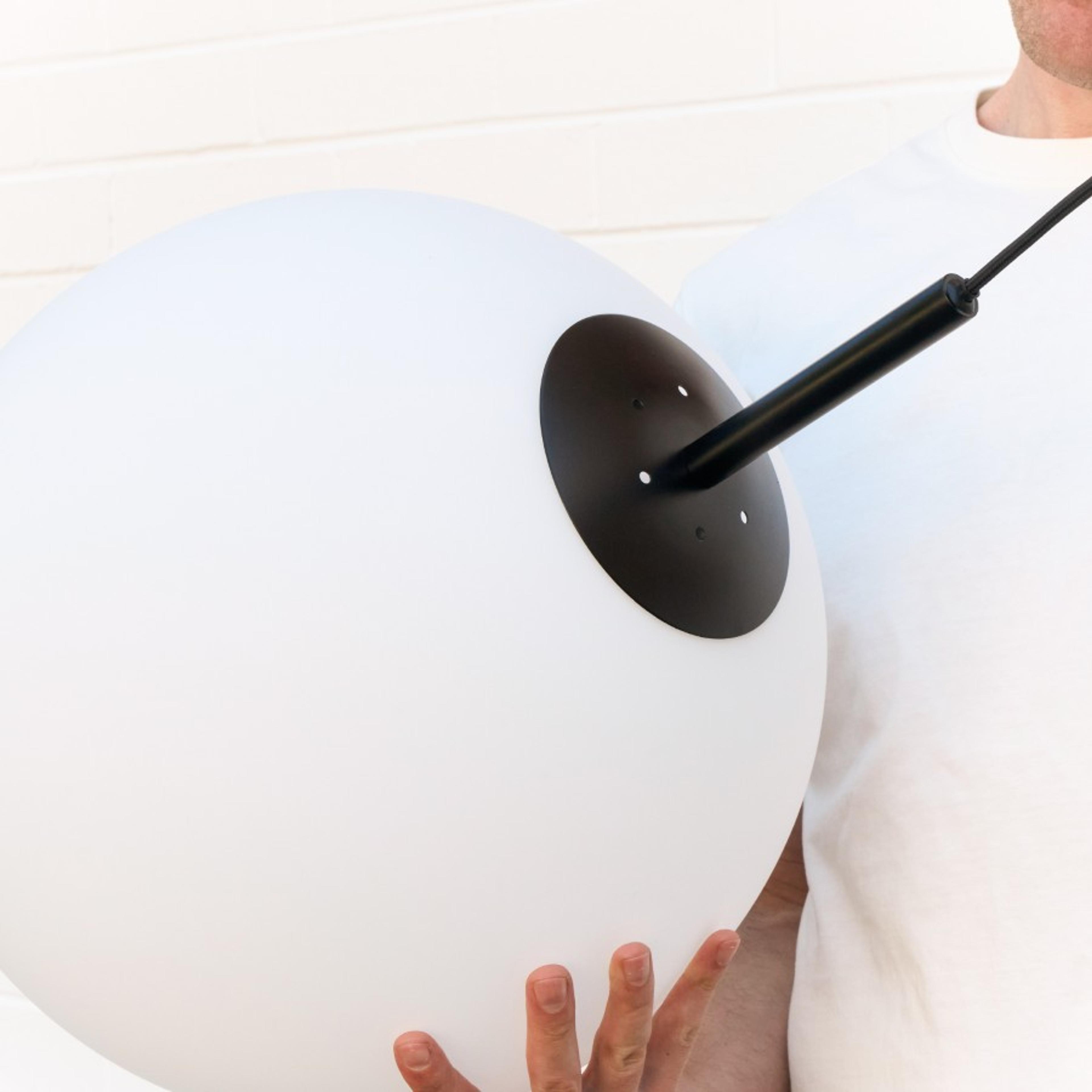 The Perth Black Hanging Light is a modern hanging light with a rounded opal glass shade and minimal metal gallery. Perfect for kitchens, dining areas, or bedrooms, its finely blasted glass diffuses light softly while the antique gold finish adds warmth and a subtle mid-century nod. Works well above a dining table or in a hallway for a gentle, inviting glow.