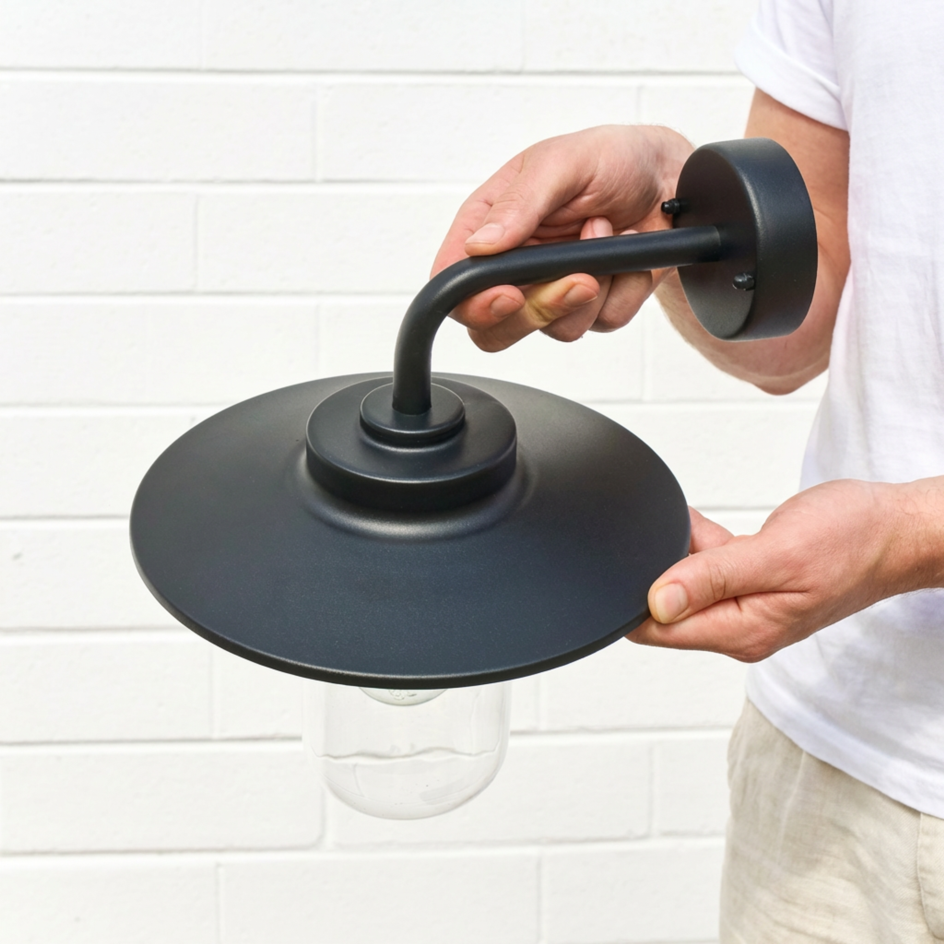 The St Kilda Black Wall Light is a classic exterior wall light in a Hampton style, perfect for updating any outdoor area. Its steel build and sandy textured black finish give a relaxed, coastal look while the metal shade over clear glass creates a welcoming glow. Works well by the front door, on verandahs, or beside the garage for an easy, stylish update.